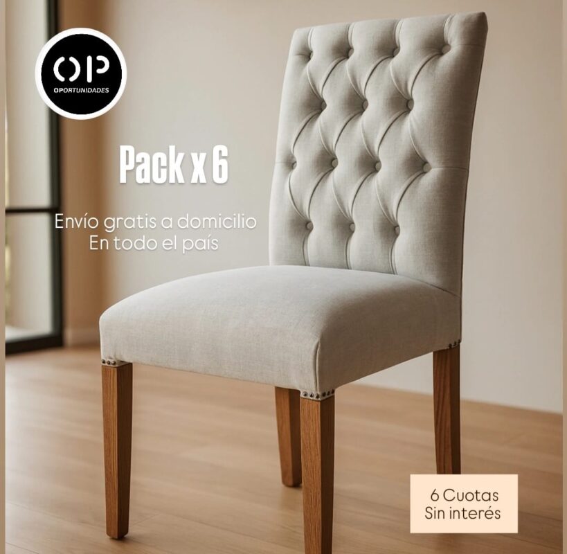 Silla Recta Pack X 6 Unidades Con Capitone,Lisa O Canelon Con Tachas. Paraiso Estacionado.